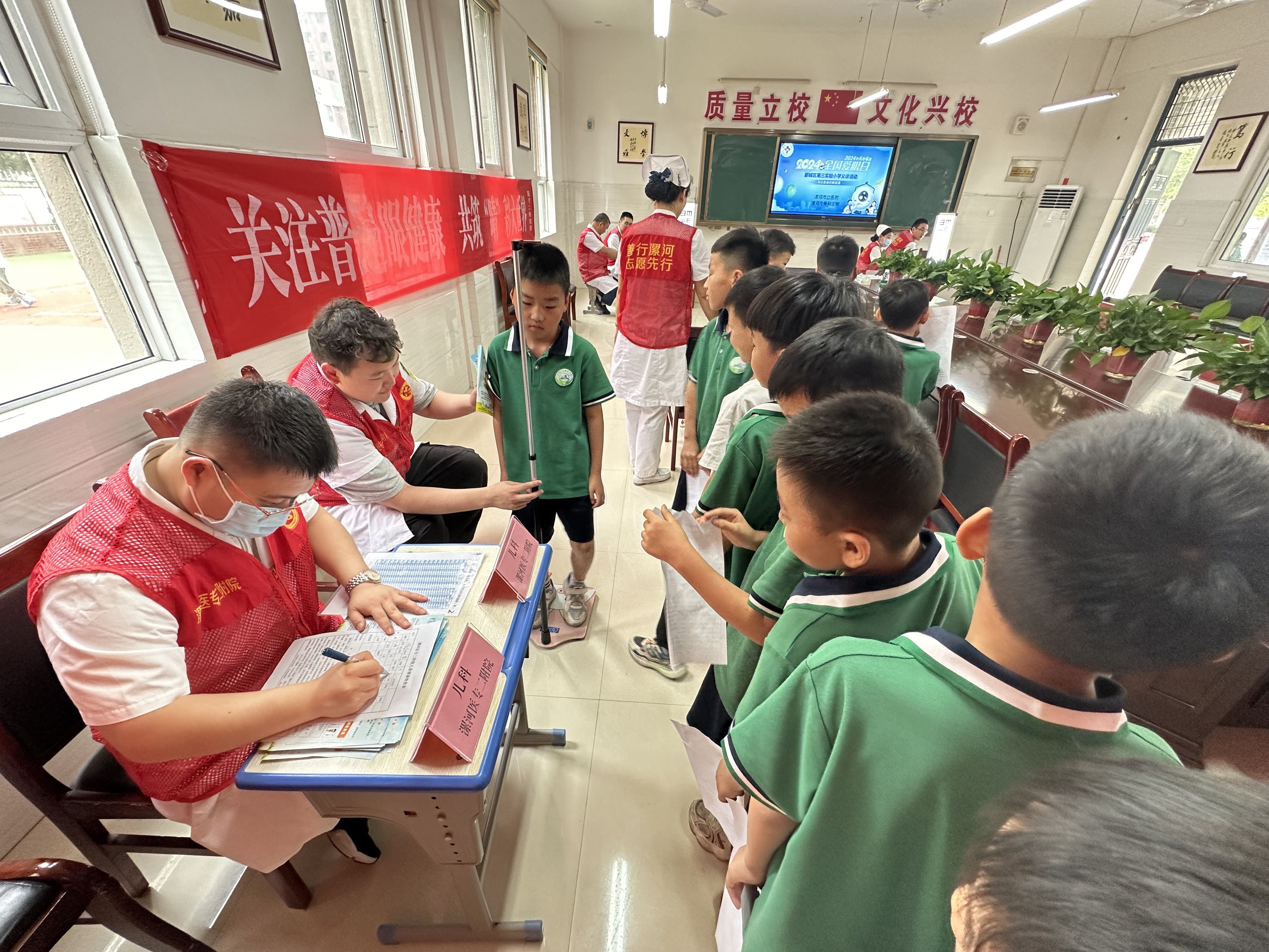 活動現(xiàn)場,學(xué)生們按照班級順序,有序進(jìn)入義診區(qū)域,醫(yī)療專家為學(xué)生們進(jìn)行身高、體重、視力等體格檢查、發(fā)放健康宣傳資料等;義診現(xiàn)場,溫馨而富有童趣,營造出輕松的愛心氛圍,醫(yī)護(hù)人員認(rèn)真、細(xì)致地為孩子們進(jìn)行檢查,受到師生們的如潮好評。