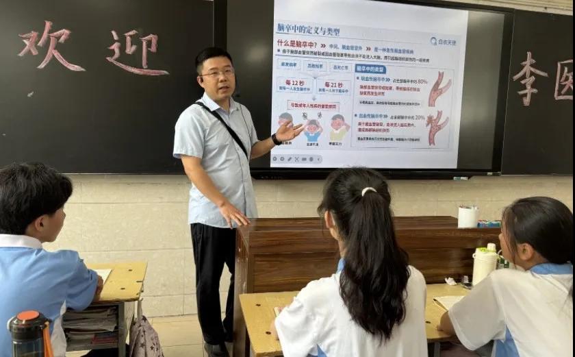 在郾城區(qū)實驗中學,神經(jīng)內(nèi)科二病區(qū)副主任李闖圍繞就《健康中國,中風識別行動》進行授課。他結(jié)合多年臨床經(jīng)驗,圍繞什么是腦卒中、腦卒中的類型、發(fā)病原因與機制、高危因素、癥狀表現(xiàn)、緊急處理與急救等多方面內(nèi)容展開講解,并教授“中風 120”口訣。通過情景模擬演示發(fā)現(xiàn)疑似癥狀后的正確應(yīng)對流程。針對學生群體的生活習慣,普及疾病基礎(chǔ)知識與科學預(yù)防方法,強調(diào)要規(guī)律作息,避免熬夜、適度運動、減少高糖飲食。