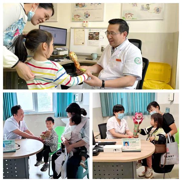 門診大廳化身兒童樂園,醫(yī)護人員化身哪吒、敖丙、花仙子等諸多可愛的卡通人物與小朋友們熱情互動,友好交流,派發(fā)精心準備的節(jié)日禮物。市二院黨委書記魏松,黨委副書記、院長胡海英攜班子成員及兒科專家、醫(yī)護團隊為小朋友們送上暖心的節(jié)日禮物與祝福,與孩子們共度“六一”。