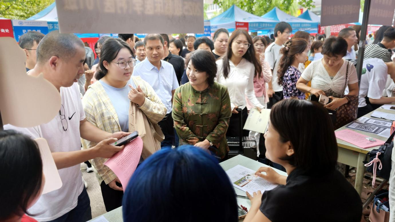 在源匯校區(qū),張祎捷首站來到校內(nèi)接站點,與剛抵達的新生與家長親切交流,詳細詢問行程是否順利、行李是否齊全。并查看校園周邊交通疏導(dǎo)、車輛??康惹闆r,叮囑工作人員做好細節(jié)服務(wù),確保迎新期間校園周邊秩序井然。