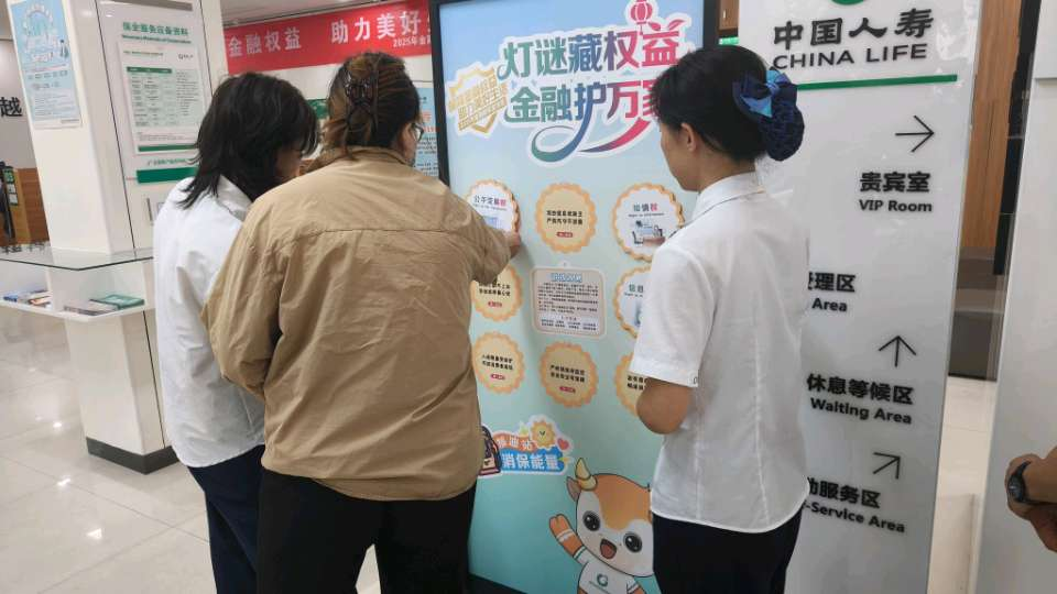 為積極響應(yīng)監(jiān)管部門(mén)的號(hào)召,切實(shí)提升社會(huì)公眾金融素養(yǎng),守護(hù)金融消費(fèi)者合法權(quán)益,在2025年9月15日至21日金融教育宣傳周期間,中國(guó)人壽壽險(xiǎn)漯河分公司在黃河路柜面消保教育宣傳基地設(shè)置“消保能量加油站”宣傳專區(qū),開(kāi)展“燈謎藏權(quán)益,金融護(hù)萬(wàn)家”活動(dòng)。