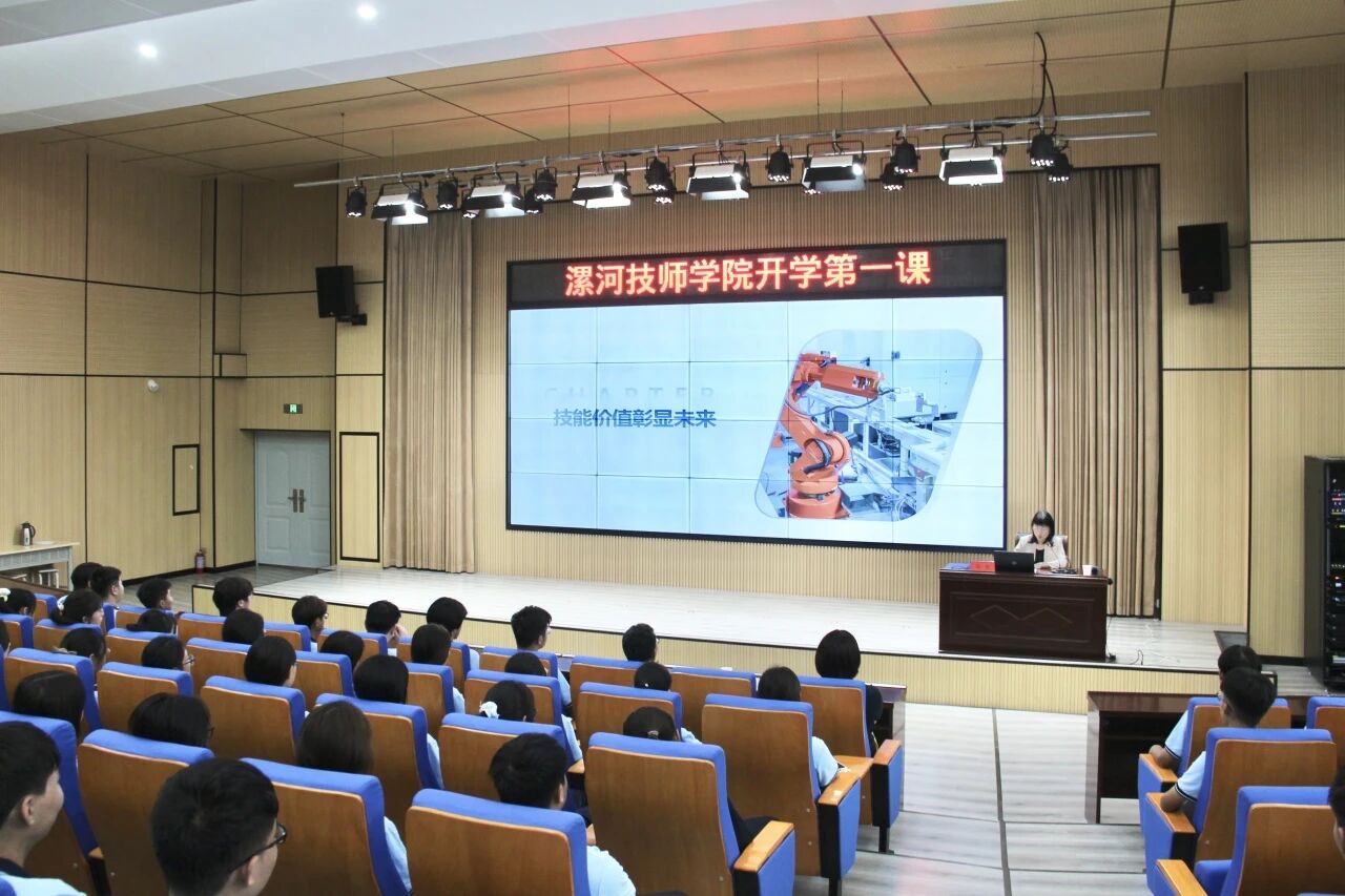 9月9日,漯河技師學(xué)院院長馮凱在潤德樓308報告廳以《技能照亮前程,勞模工匠領(lǐng)航》為題,為2025秋季新生講授“開學(xué)第一課”,以有高度、有深度、有情懷、有溫度的思想政治理論課形式,點燃漯技學(xué)子逐夢技能的報國熱情。活動由學(xué)院黨委副書記范偉鋒主持。