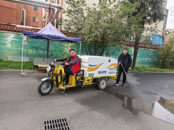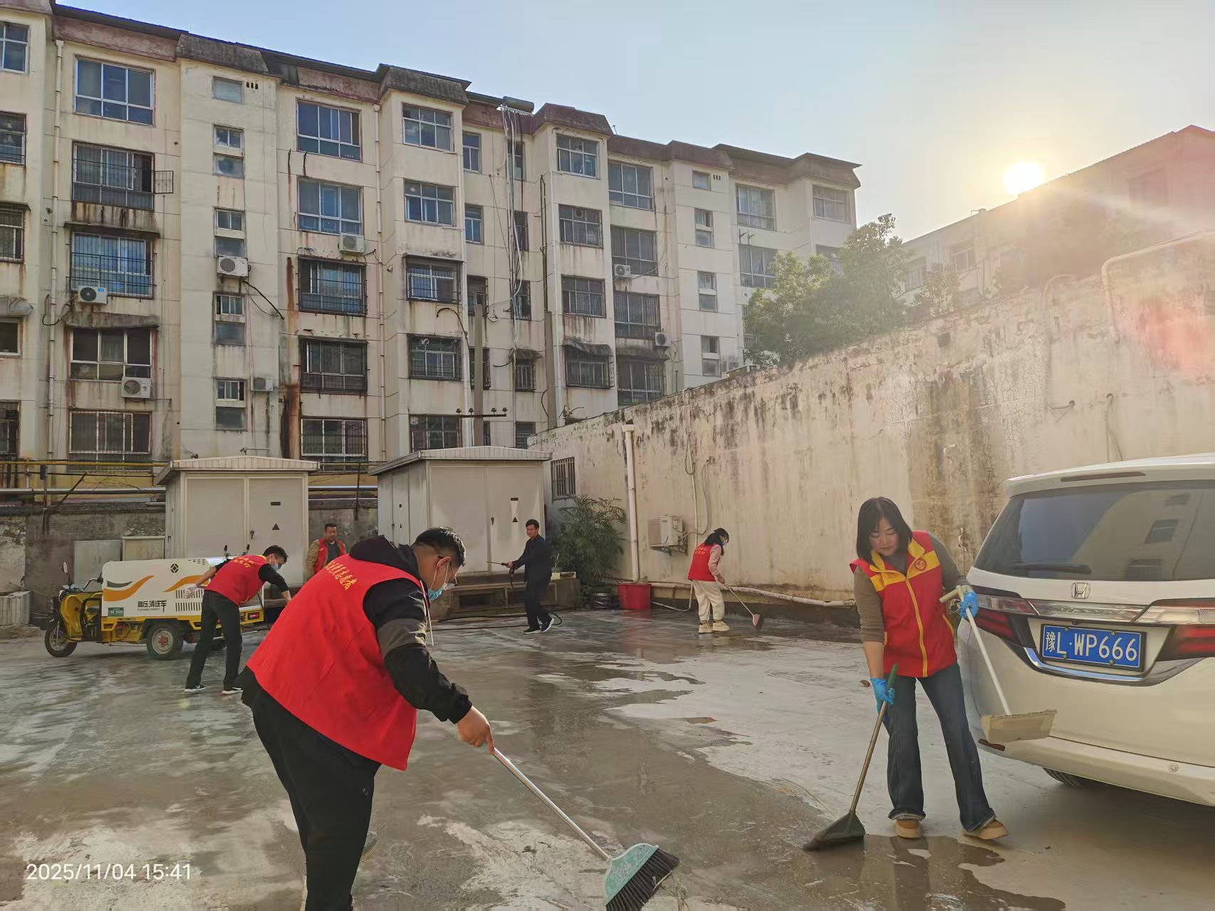 公共區(qū)域的“煥顏洗禮”:高壓水槍發(fā)出有力的轟鳴,水流所到之處,地面沉積的污漬、苔蘚被一掃而光。志愿者們揮舞著掃帚,配合水槍沖洗,將淤泥和積水推向下水道。沖洗過的地面露出了原有的顏色,在陽光下泛著濕潤的光澤,仿佛為小區(qū)進行了一次徹底的“潔面”。