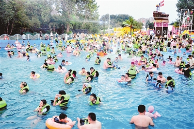 神州鳥(niǎo)園嬉水樂(lè)園內(nèi)人潮涌動(dòng)。