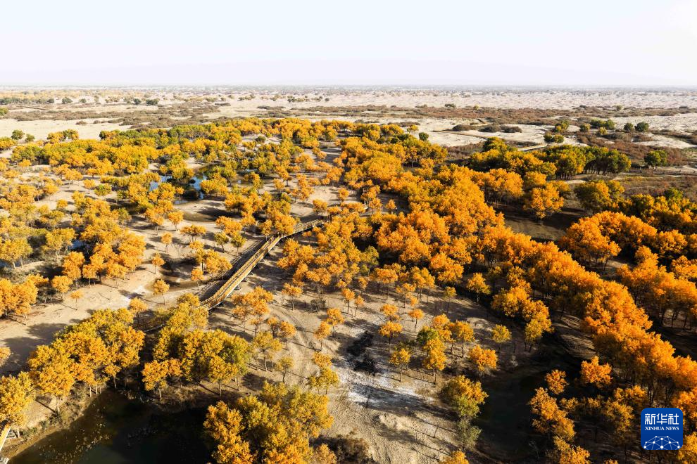 時下,新疆和田地區(qū)的胡楊迎來最佳觀賞期,成片換妝的胡楊林與水天相映,共繪金秋美景。