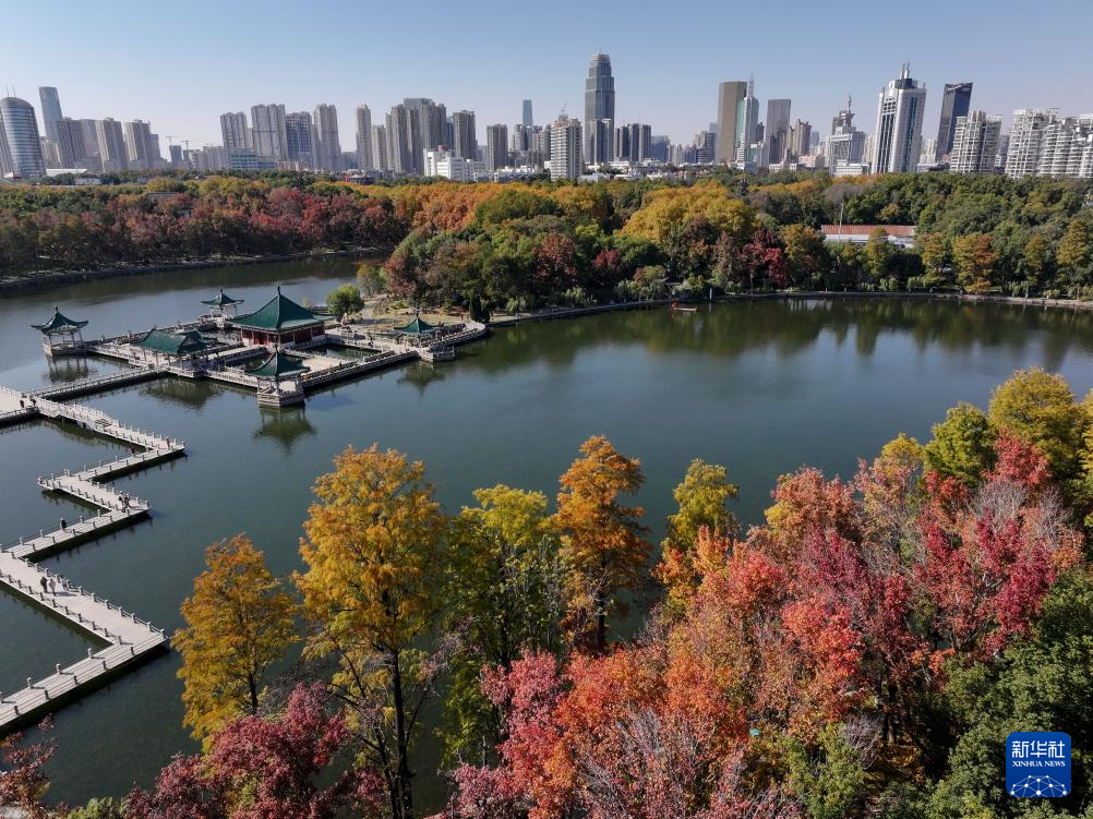 11月18日在湖北省武漢市東湖風(fēng)景區(qū)拍攝的初冬景色(無人機照片)。