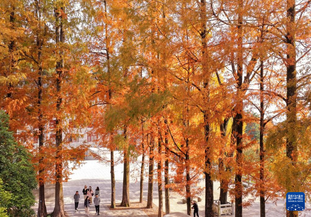 11月19日,游客在湖南省衡陽市南岳衡山風(fēng)景區(qū)賞景游玩(無人機照片)。